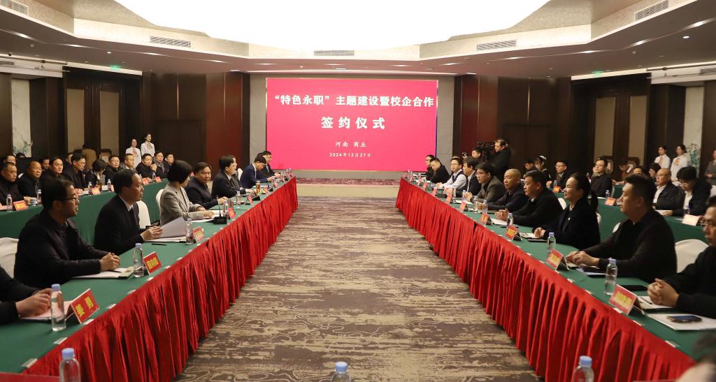 永利官网“特色永职”主题建设暨校企合作签约会在商丘隆重举行12月27日上午,永利官网“特色永职”主题建设暨校企合作签约会在商丘信华建国酒店隆重举行。省教育厅党组成员、副厅长、省委教育工委委员吕冰,商丘市委常委、市委组织部部长、市委教育工委书记毕启民,商丘市人民政府副市长王爱林,省教育厅职成教处三级调研员高根立,商丘市教育体育局党组书记、局长王新胜,永利官网党委副书记、院长叶长青出席活动。院领导苗向锋、聂守丰、刘福奎、操龙坤、姜勇和4位特聘客座教授、16家企业代表及学...